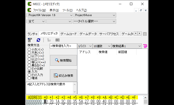 海外版パーフェクトダーク用の改造コードを日本語版パーフェクトダークでも使えるように変換するやり方です。必要なものN64エミュレータ:Project64 1.6プロセスメモリエディタ:MECC海外版パーフェクトダークのROM:Perfect ...