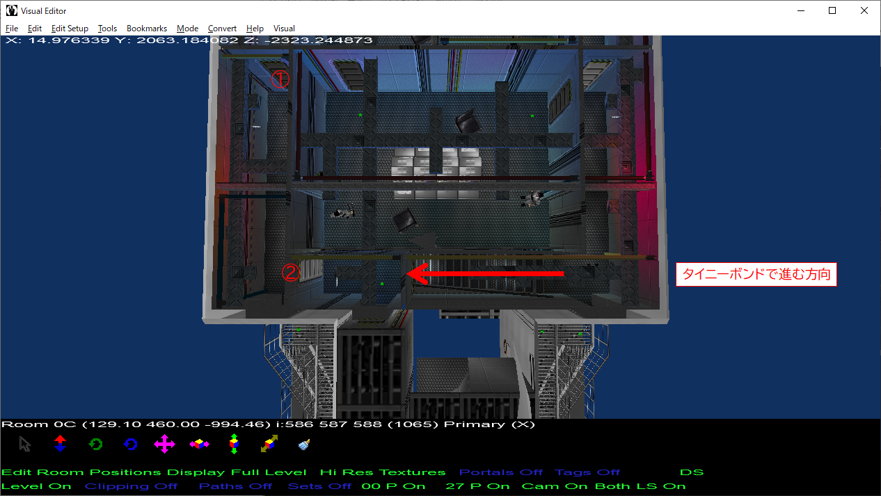 一体このドアがどこに配置されているのか、ハックロムツールの「GoldenEye Setup Editor」で確認してみましょう。