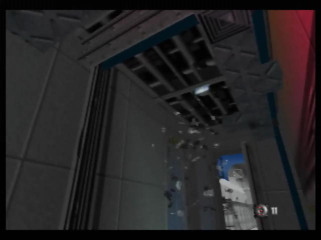 空中浮遊の裏技ですり抜けた先にあるフロアは、向かいのフロアのはずですが、壁も床も何も表示されていないのはそのためです。