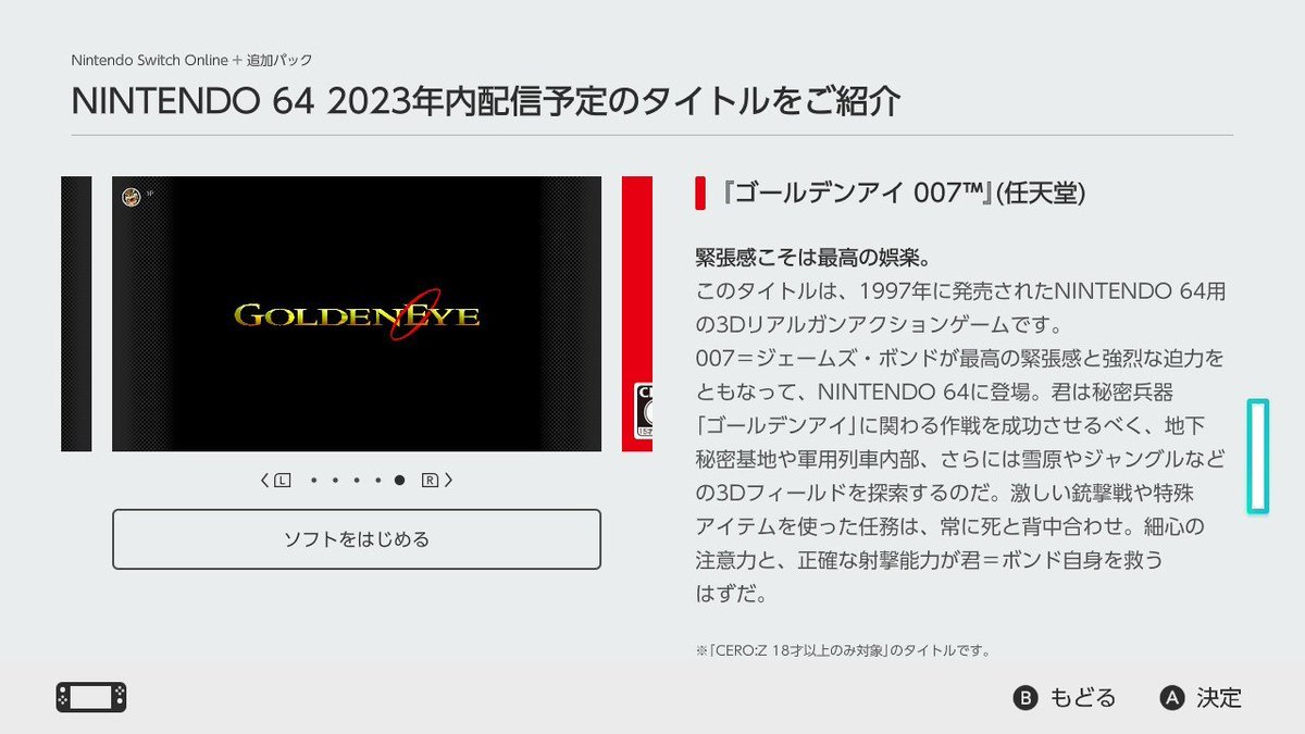 また、上記ページにも記載されているのですが、ゴールデンアイ007は「CERO:Z 18才以上のみ対応」とされています。