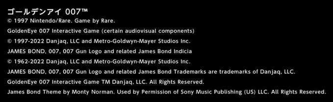 上記動画の最後に著作権表記がありますが、ゴールデンアイは多くの権利が絡み合っていることがわかります。